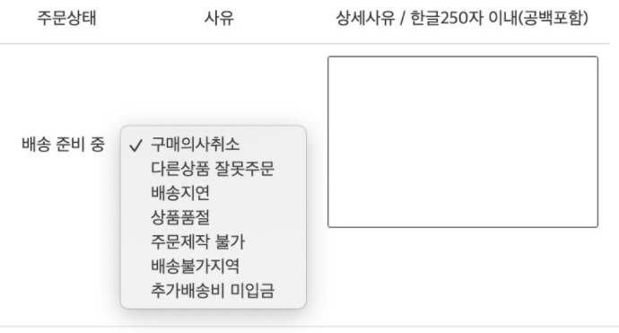 ►메뉴 경로: 판매자 센터 > 판매관리 > 주문 상세 > 취소 요청
